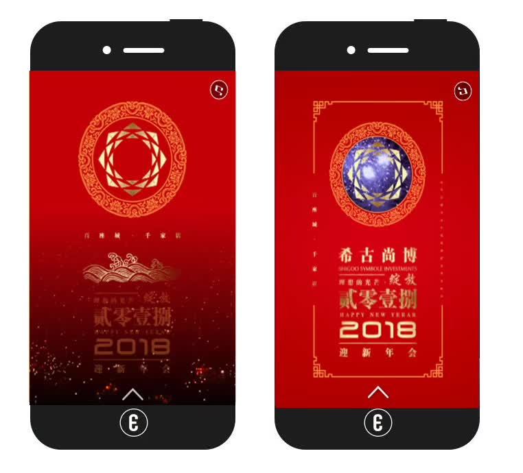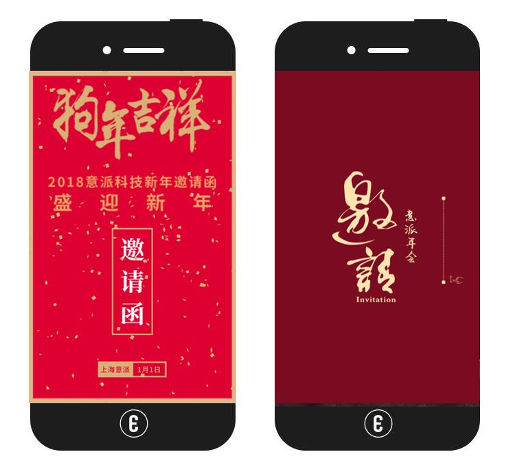意派上线的两款年会邀请函 H5,一支是比较通用的翻页形式,在视觉上进行了设计包装;另一支通过特色的关联控制功能制作而成,细腻的动画衔接过渡使得邀请函质感颇为高级。
