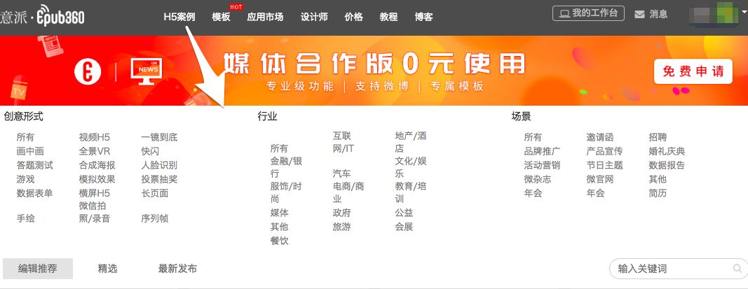 为方便各位派友在意派官网查找作品,案例作品区新增作品分类,目前主要分为创意形式、行业、场景三个类别。目前官网正在升级改版中,近期即将上线,敬请期待哦~