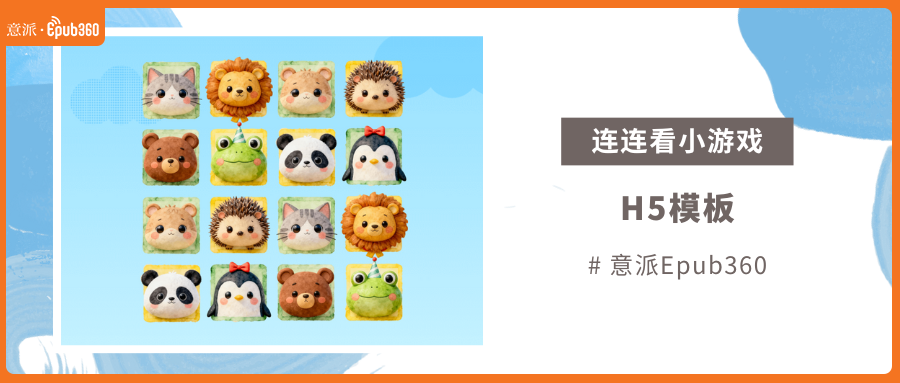 意派Epub360官网现已上架一款连连看小游戏H5模板,赶紧来体验一下吧~