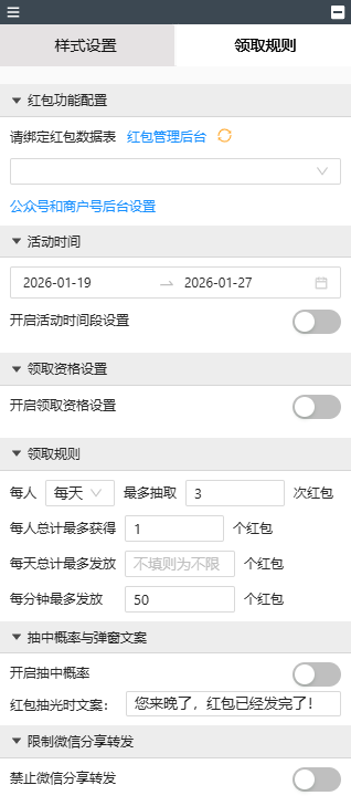 - 支持抽中概率与弹窗文案设置