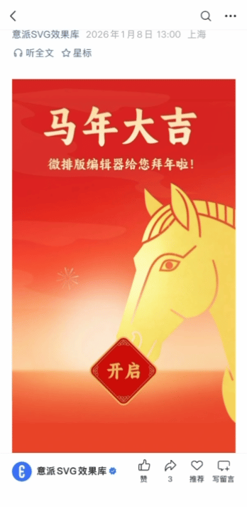 微排版SVG编辑器上线后,帮助很多用户制作了具有丰富交互效果的公众号SVG交互图文。那些有趣的互动式设计让受众在阅读公众号推文时,不再是被动接收信息,而是能够主动融入其中,极大地提升了受众的参与感和阅读体验。