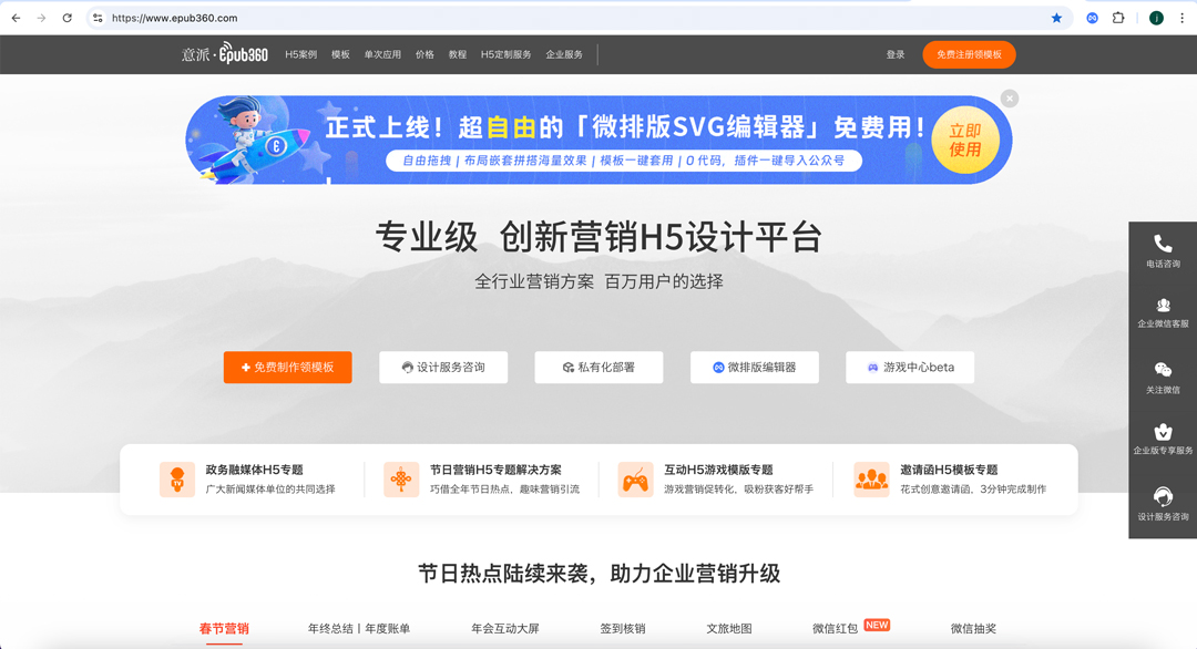 对于新手来说,一款好用的H5制作工具,不仅要操作简单,还要性价比高。意派epub360有免费体验版,新手可以先试用,熟悉功能后再根据需求选择版本,不用盲目付费。而且免费版的功能已经足够新手使用,制作简单的H5完全没问题,不用花一分钱,就能解锁高质量H5制作技能。
