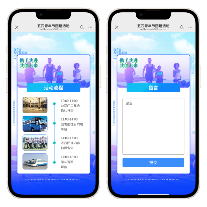 玩法介绍:该模板主要包含活动目的、活动流程等图文内容板块,用户浏览完毕后,可提交留言、发表感言。